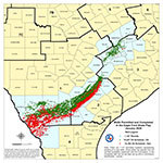 January 2026 | 20”x20” | $11.00 | Active permit (blue) and Producing Gas (red) and Oil (green) wells in the Eagle Ford Shale Play area. Commission districts and county boundaries. |